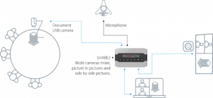 You can use the camera mixer feature of the SHARE2 to embed your two video sources into one single stream. This feature can be an important asset for you if your application only supports one video interface, like Teams®, Zoom®, Webex®, GoToMeeting® and all video conferencing applications.