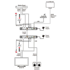 This Transceiver is designed for high-quality, IP routable, AV extension with zero latency. Each single Transceiver can be confi gured as either a Transmitter or a Receiver depends the requirement of installation facility. The 4K@60 high quality video with HDR 10 bits and multi-channel HD Bitstream audio are able to transmit in pass through mode over Cat.6A up to 100m extension.