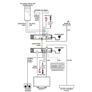 This Transmitter and Receiver set is designed for high-quality, IP routable, AV extension with minimum latency. By using a sophisticated ultra-light compression scheme (lossless for most content) it’s a great solution for extending 4K audio/video streams (HDMI or DisplayPort) and data. Advanced HDMI content such as HDR (High Dynamic Range), 10-bit color and multichannel HD Bitstream audio can be transmitted in pass-through mode. The use of interchangeable, fi eld replaceable, SFP+ modules allows for transmission distances of up to 30km (Maximum transmission distance depends on the SFP+ modules used.). Multiple control and data signals may also be transmitted along with the audio and video, including IR, RS-232, USB (for KVM) and Ethernet.