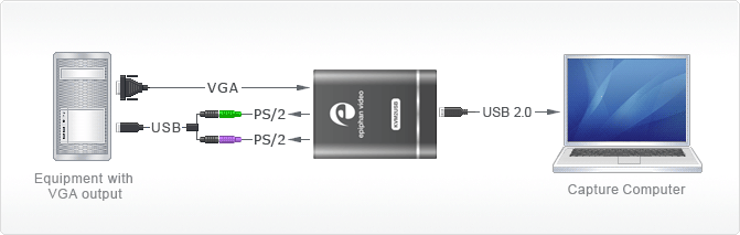 Compact, portable device for KVM over USB access. Conveys the VGA stream from any host computer to a laptop, while emulating the laptop’s keyboard and mouse outputs.