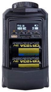 MOHOC® Cameras come equipped with our Li-ion Rechargeable 1100 mAh battery, but can also use two standard CR123A batteries. Up to 2 hr 45 min of record time with the MOHOC rechargeable and 5+ hours of uninterrupted video under CR123A power.