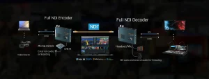 Switch Full NDI encoding and decoding with one key; Support 3G-SDI and HDMI 4K30 or below any SMPTE standard format input; Full NDI encodes and decodes exact original image color and sharpness, low latency, broadcast-grade metrics, flexible UDP features, integrated TALLY, audio embed/unembed and call capabilities, flexible live applications and networking, enabling your team to quickly build an IP broadcast-grade studio with high efficiency and low cost…
