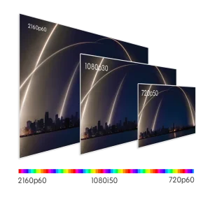 NDI® Studio 4K.H is also both HDMI2.0 Interface Up/Down/Cross converter. The conversion function and NDI codec function work at the same time and it supports at least 27 SMPTE standard formats, special formats customized by users can also be accepted.