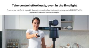 With the remote control, video creators using OBSBOT Tail Air will never lack an assistant, as this gadget puts everything under your control. It is pocket-sized, intuitive to use, allowing you to instantly and precisely control your Tail Air's various features before your audience figures it out.