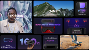 QooCam EGO's attachable magnetic viewer instantly transforms the camera into a mini 3D theater. Immediately view content in 3D when attaching viewer to the camera.